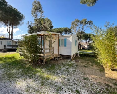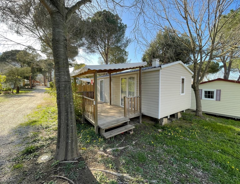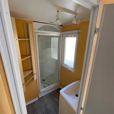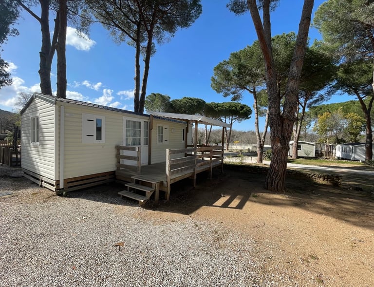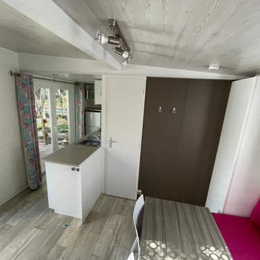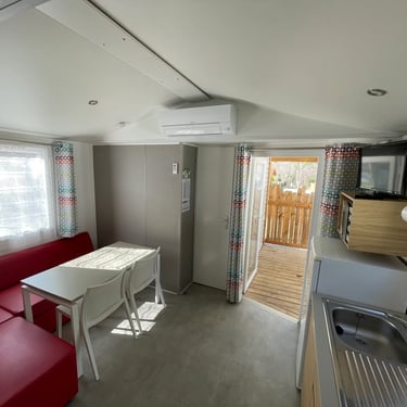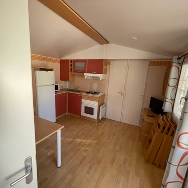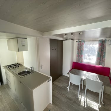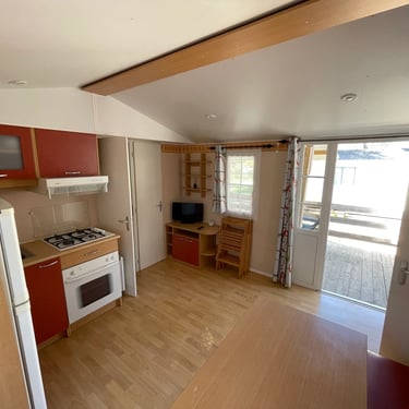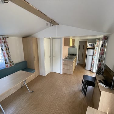 Installez-vous dans ce charmant mobil-home cottage, parfaitement situé sur un emplacement spacieux, à deux pas du bar et de la piscine. L’endroit parfait pour profiter pleinement de vos vacances, entre détente et convivialité. Pensé pour allier praticité et confort, ce mobil-home est équipé de : Climatisation, pour des journées et des nuits agréables. Lave-vaisselle, pour plus de simplicité au quotidien. Télévision, pour vos moments de détente. Un cadre chaleureux, des équipements modernes et une atmosphère apaisante : tout est réuni pour que vous vous sentiez chez vous dès le premier jour.