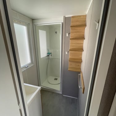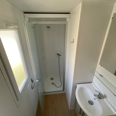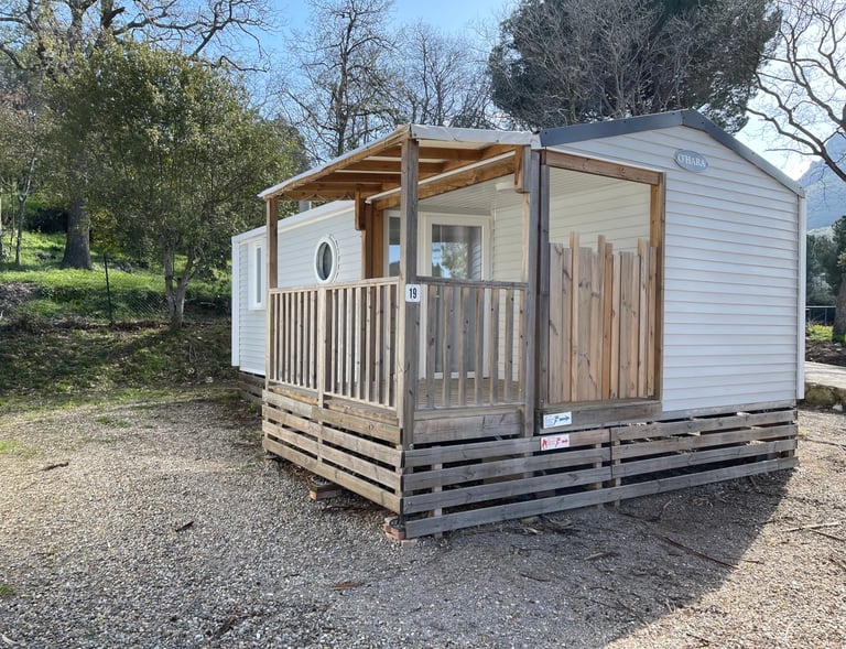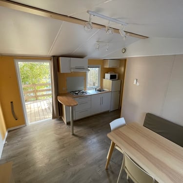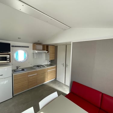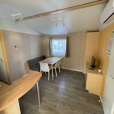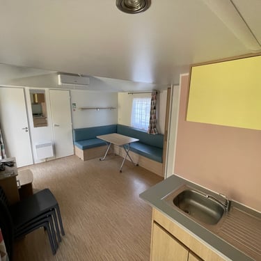 ✅ Mobil-home confortable et fonctionnel, idéal pour un couple