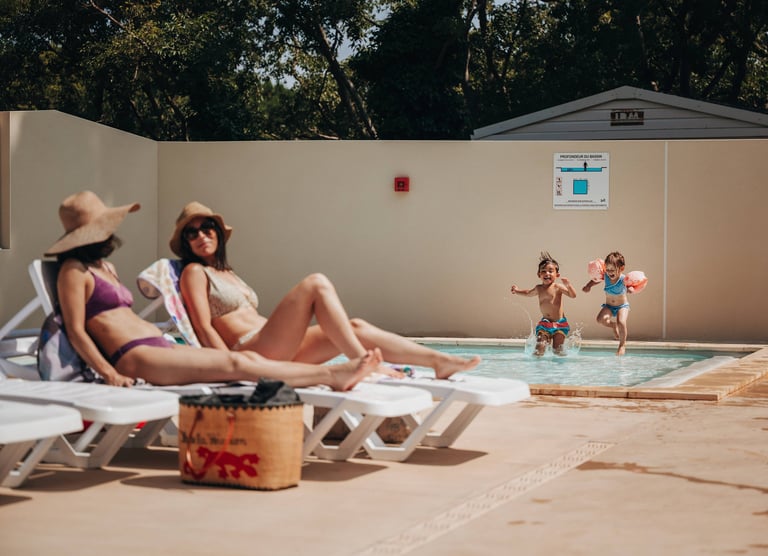 Nestled in the heart of Camping Le Rancho, our heated swimming pool is the perfect place to cool off under the sun of the Pyrénées-Orientales. With a depth ranging from 1.30 m to 1.50 m, it’s ideal for swimming, having fun, or simply relaxing with family or friends.