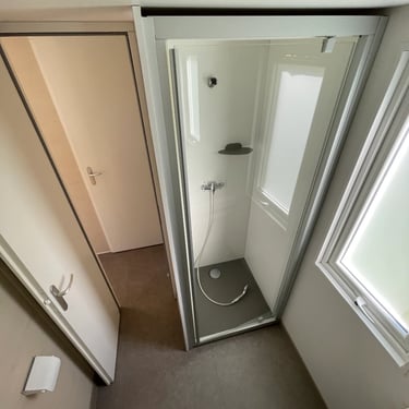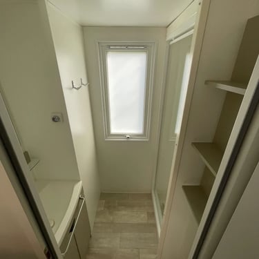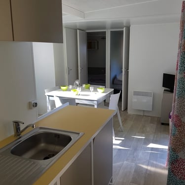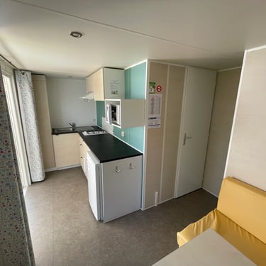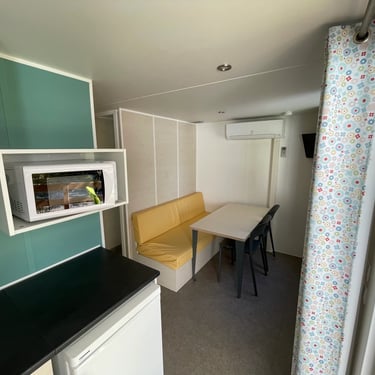 ✅ Mobil-home confortable et fonctionnel, idéal pour un couple.