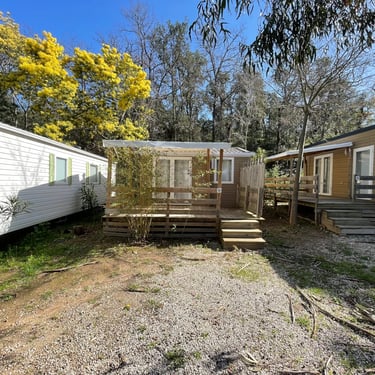 Venez découvrir ce charmant mobil-home idéal pour 2 personnes, situé au sein de notre camping, sur le plateau du haut. Son emplacement privilégié vous offre le parfait équilibre entre convivialité et sérénité : à deux pas du bar et de la piscine pour profiter pleinement des installations, tout en étant niché dans un environnement calme et reposant. Avec son espace optimisé et chaleureux, ce mobil-home est une invitation à la détente, que ce soit pour un pied-à-terre saisonnier ou un projet de résidence de vacances.