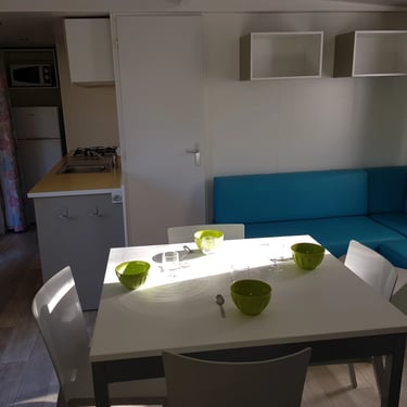 Installez-vous dans ce charmant mobil-home cottage, parfaitement situé sur un emplacement spacieux, à deux pas du bar et de la piscine. L’endroit parfait pour profiter pleinement de vos vacances, entre détente et convivialité. Pensé pour allier praticité et confort, ce mobil-home est équipé de : Climatisation, pour des journées et des nuits agréables. Lave-vaisselle, pour plus de simplicité au quotidien. Télévision, pour vos moments de détente. Un cadre chaleureux, des équipements modernes et une atmosphère apaisante : tout est réuni pour que vous vous sentiez chez vous dès le premier jour.